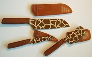Kuhn Rikon 3 pc Animal Giraffe Print Knife Set with Safety Sheath Cutlery Category: Home & Kitchen